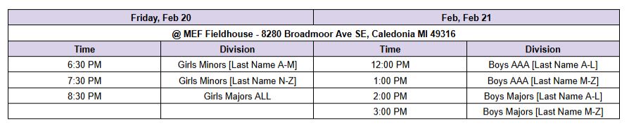 - This is for Upper Divisions only, Boys AAA, Girls Minors, Boys Majors and Girls Majors.